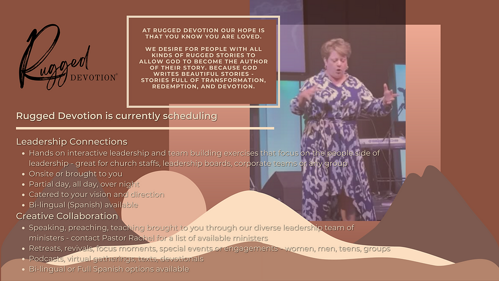 Speaking, preaching, teaching brought to you through our diverse leadership team of ministers - contact Pastor Rachel for a list of available ministers.